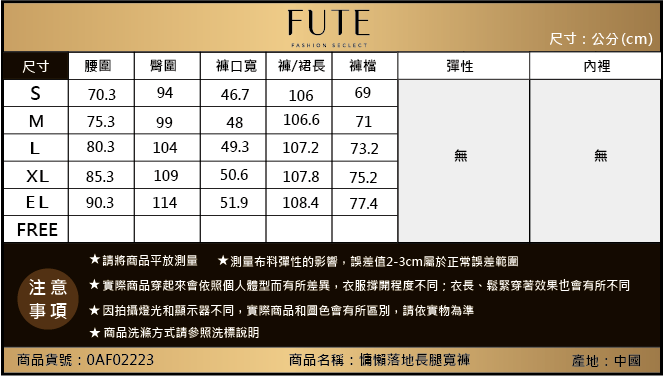 商品介紹:時下流行的落地剪裁寬褲,拉長視覺比例,時尚百搭。